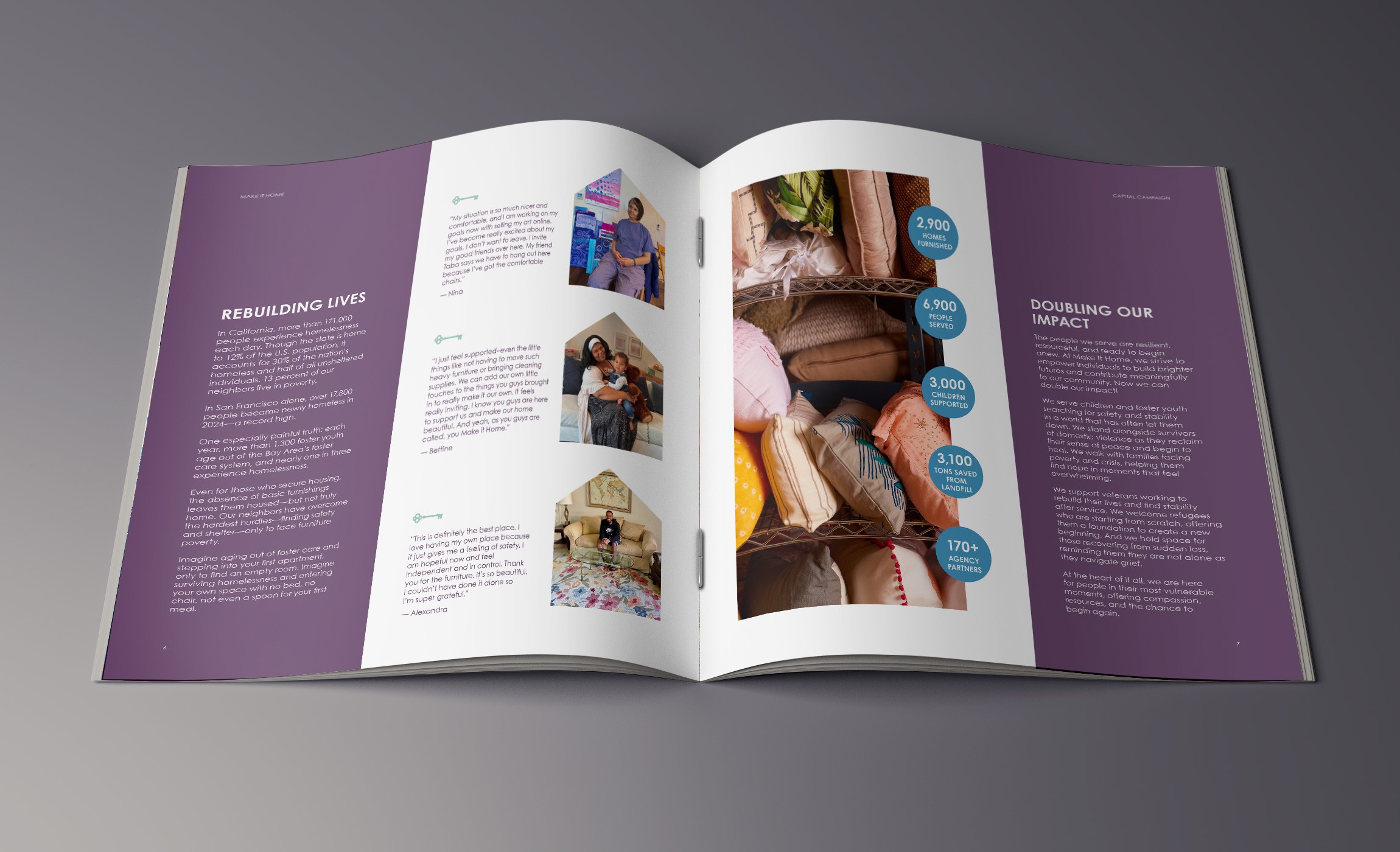 Make It Home Bay Area keeps quality furniture out of landfills and puts it into the homes of families in need — and they were ready to grow. To secure funding for a larger warehouse and expand their reach, they launched a Capital Campaign and needed a booklet that could carry the full weight of that vision.
