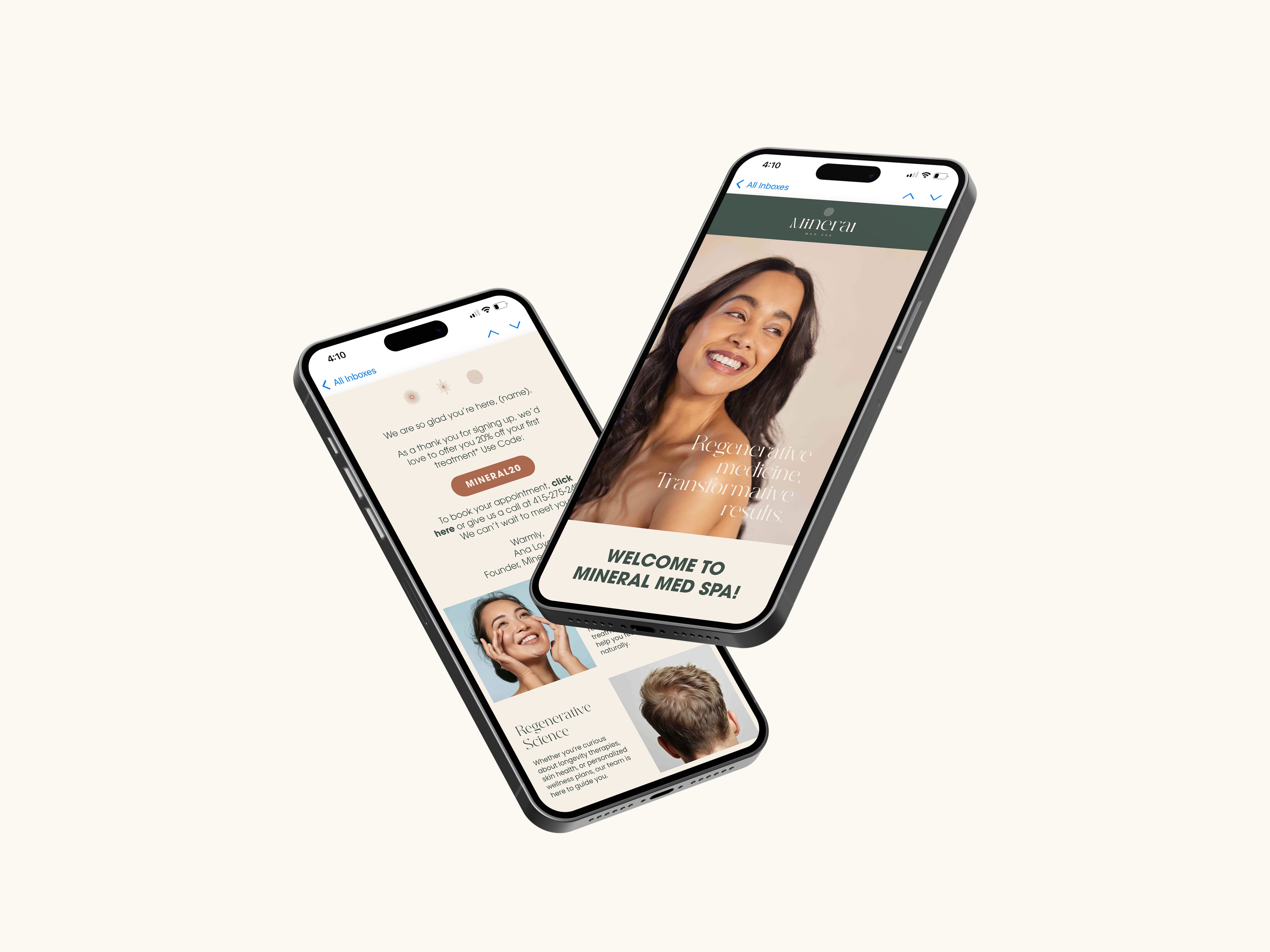Mineral Med Spa came to me with a bold vision — to merge the indulgence of a luxury spa with the innovation of regenerative science, delivered with the convenience, privacy, and discretion of in-home treatments. We built their brand from the ground up, creating a refined yet approachable identity and rolling it out across a mobile-optimised website, service brochures, email templates, social media, and advertising. The result is a cohesive presence that positions them as Marin County’s first mobile med spa — offering breakthrough treatments in the most comfortable and luxurious setting of all: your own home.